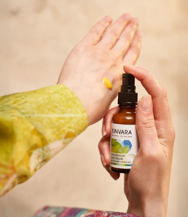 Kinvara skincare looks like the plants it comes from. Our uncompromised concentrated blend of plant goodness shows through our products. Our serum is an iconic orange thanks to plentiful carrot and sea buckthorn extract, and our day cream carries a soft pink hue in the summer when the freshly picked rosehips we use are at their ripest.