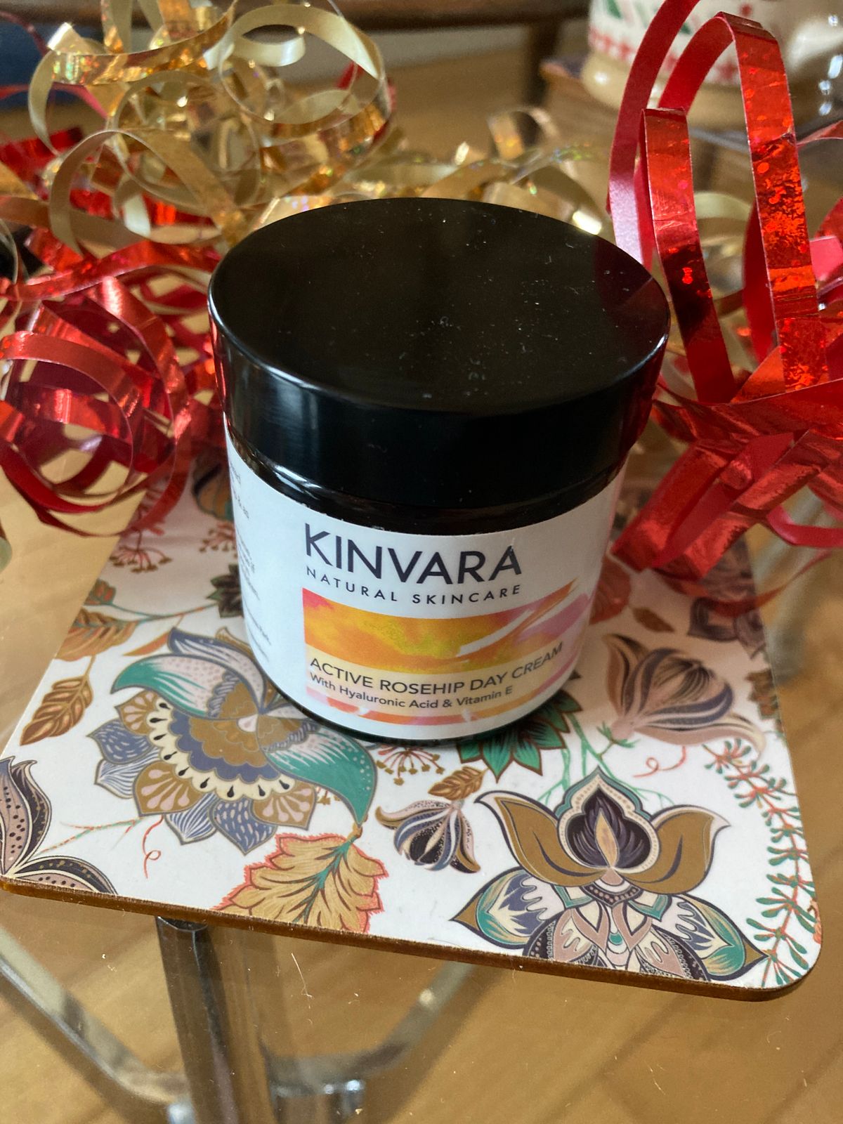 Aqua, Rosa canina (Rosehip*) fruit oil, Sodium stearoyl lactylate, Carthamus tinctorius (Safflower*) seed oil, Glyceryl stearate, Glycerin, Cetyl alcohol, Tocopherol (Vitamin E), Citrus limon (Lemon) peel oil, Lavandula angustifolia (Lavender) flower oil, Sodium hyaluronate, Benzyl alcohol, Salicylic acid, Sorbic acid (Geraniol, Limonene, Linalool, Citral in essential oils).